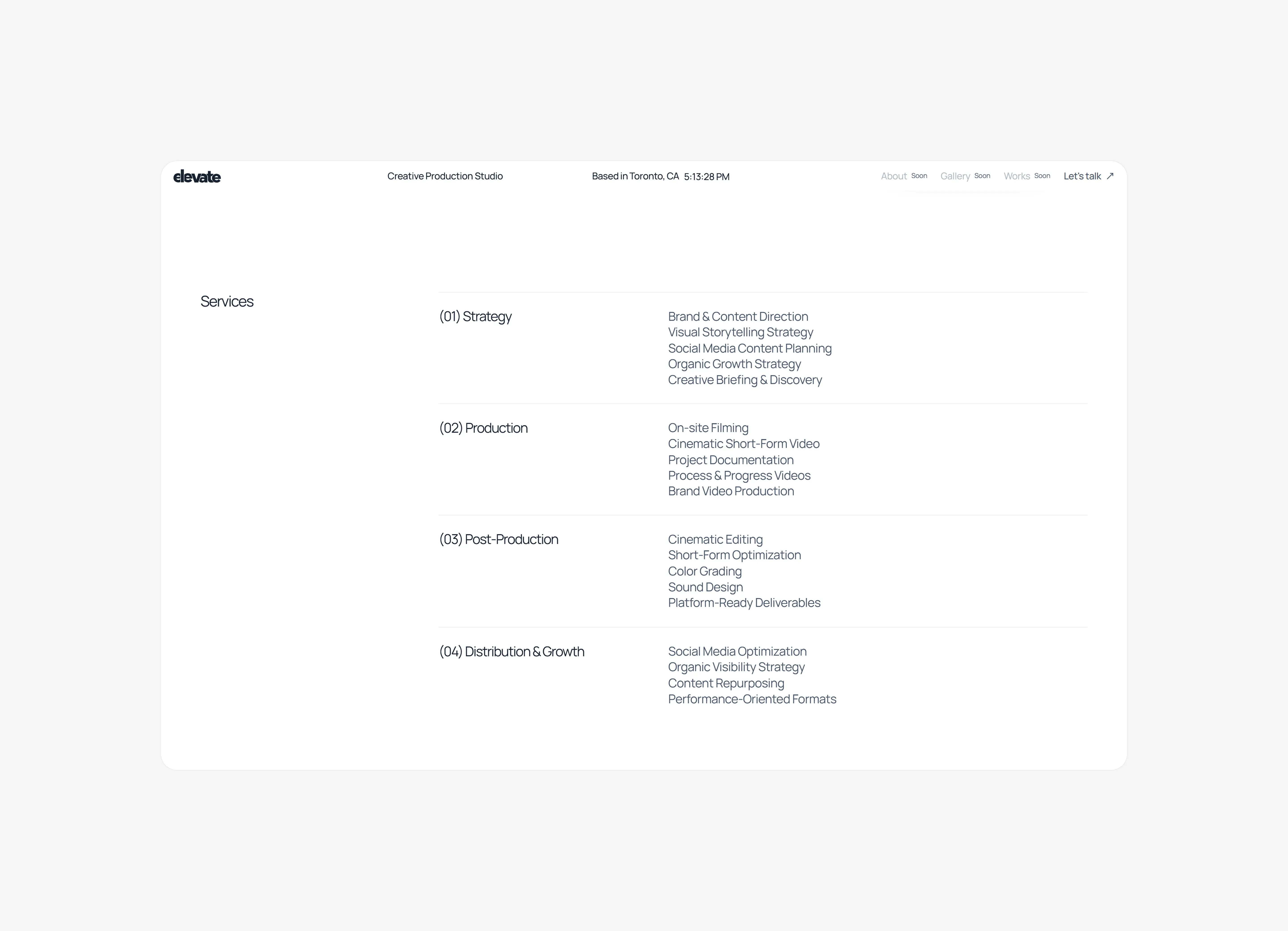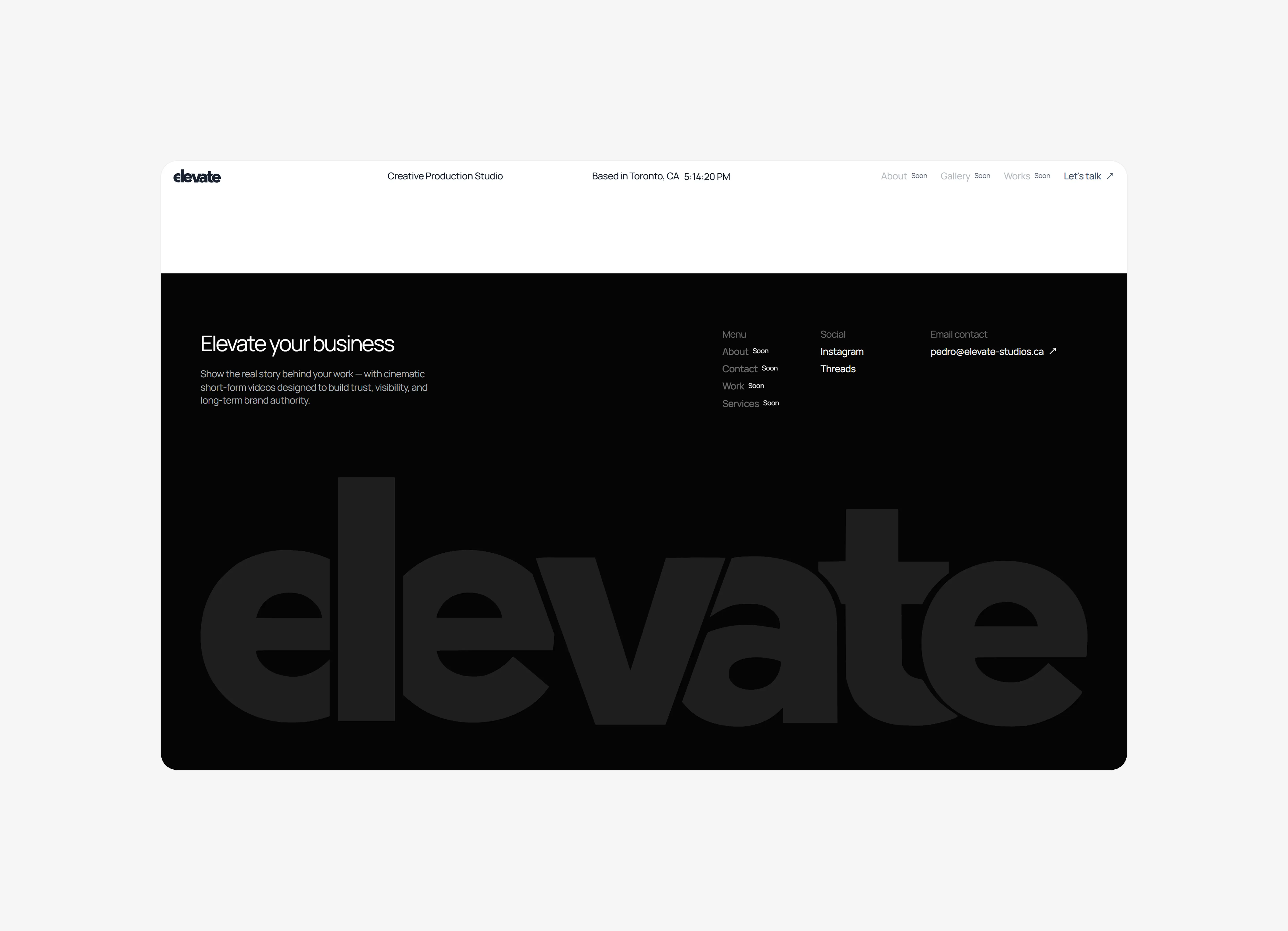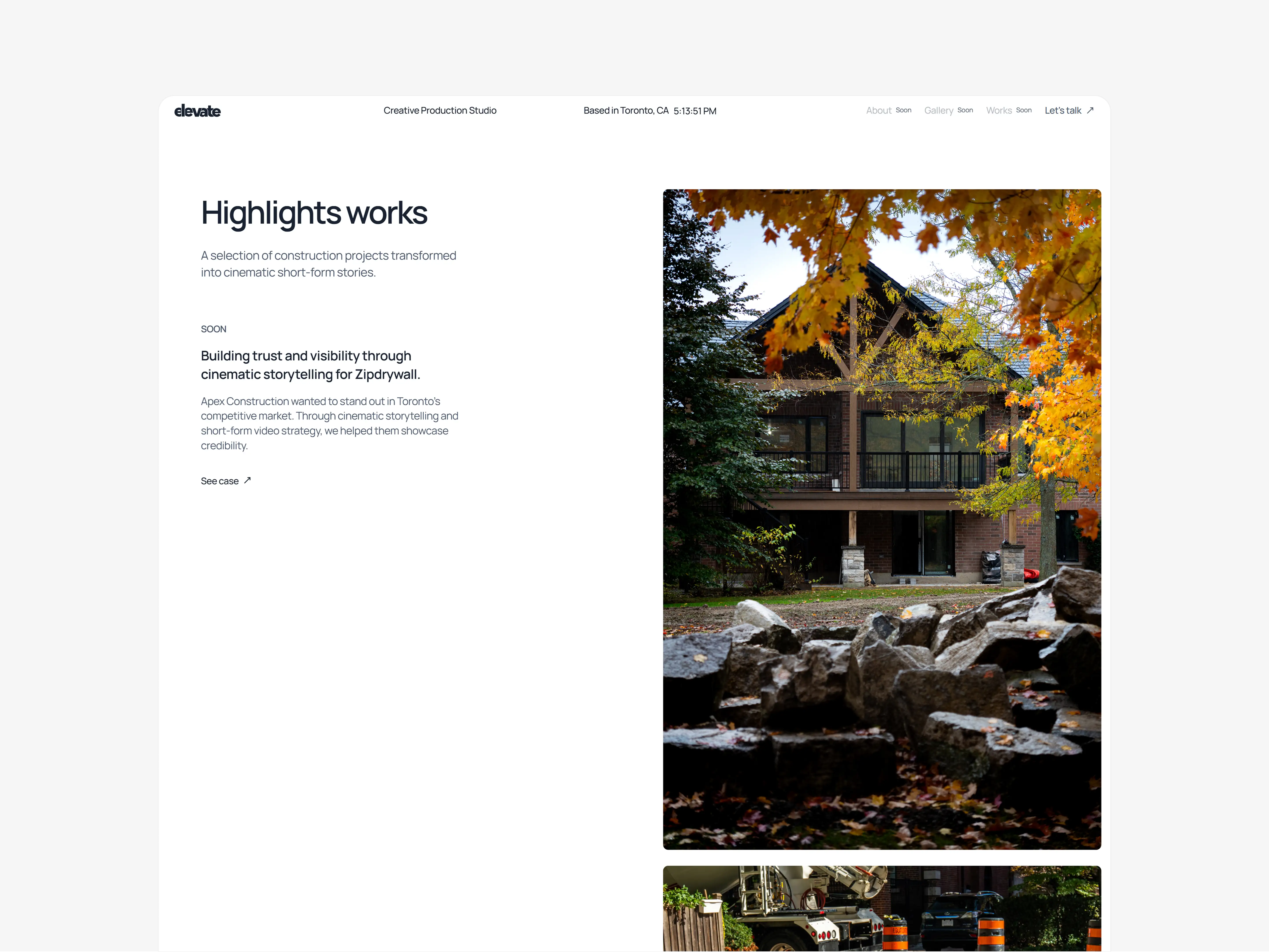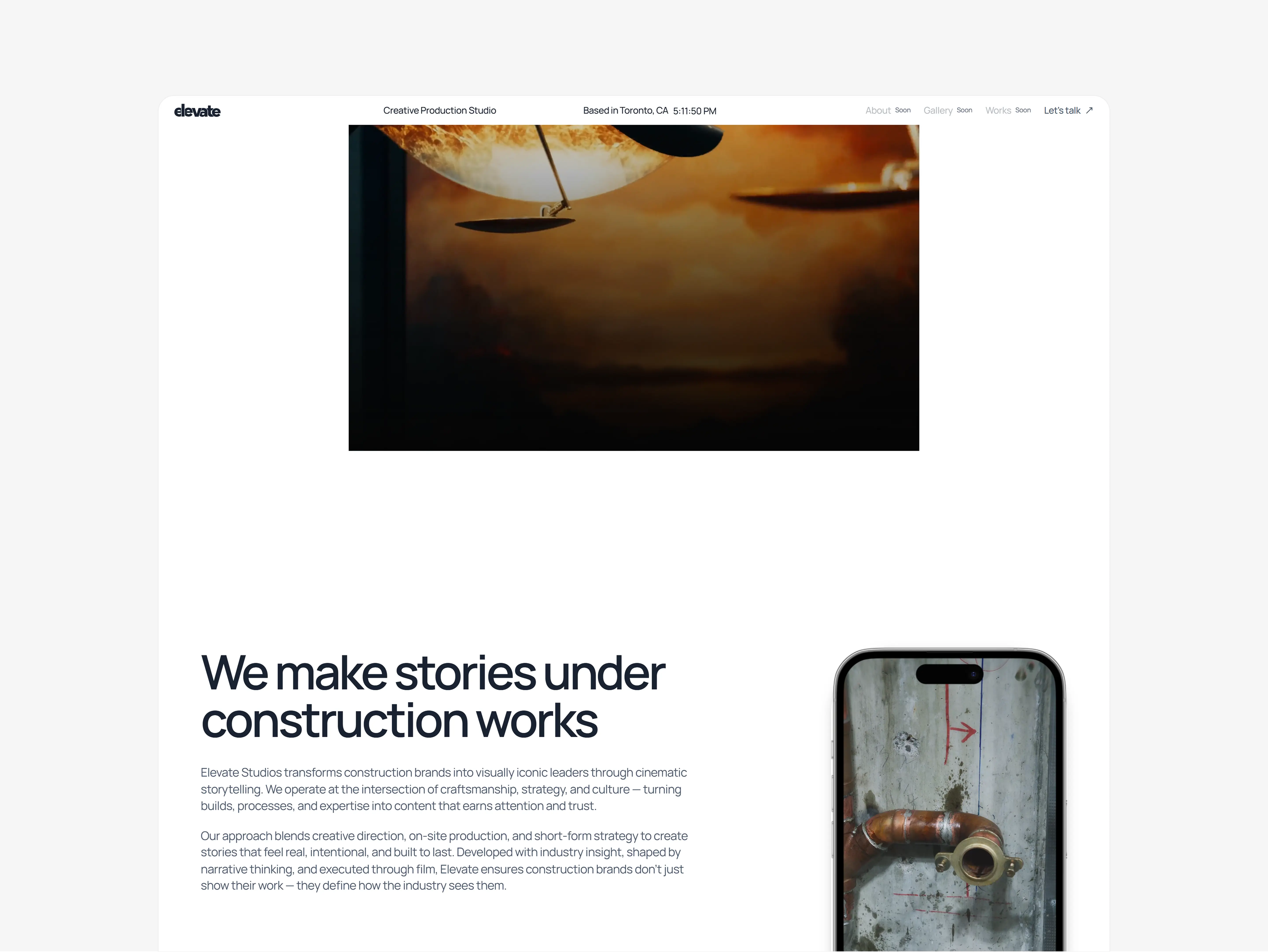 Elevate Studios is a premier production house based in Toronto, Canada, specializing in high-impact, short-form video content for the construction industry. I was responsible for the end-to-end execution of their digital presence—from the strategic interface design to the full technical implementation.